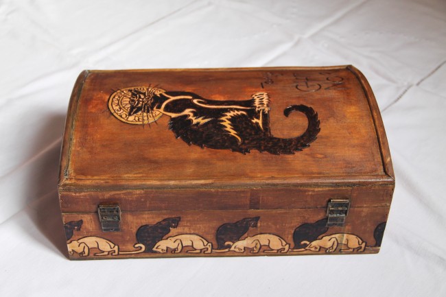 Le couvercle est gravé du célèbre chat de la non moins célèbre affiche de la Tournée du Chat Noir.