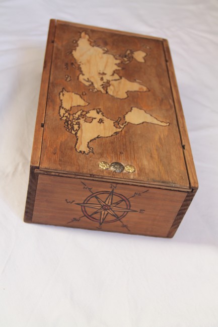 Le couvercle est gravé de la carte du monde.