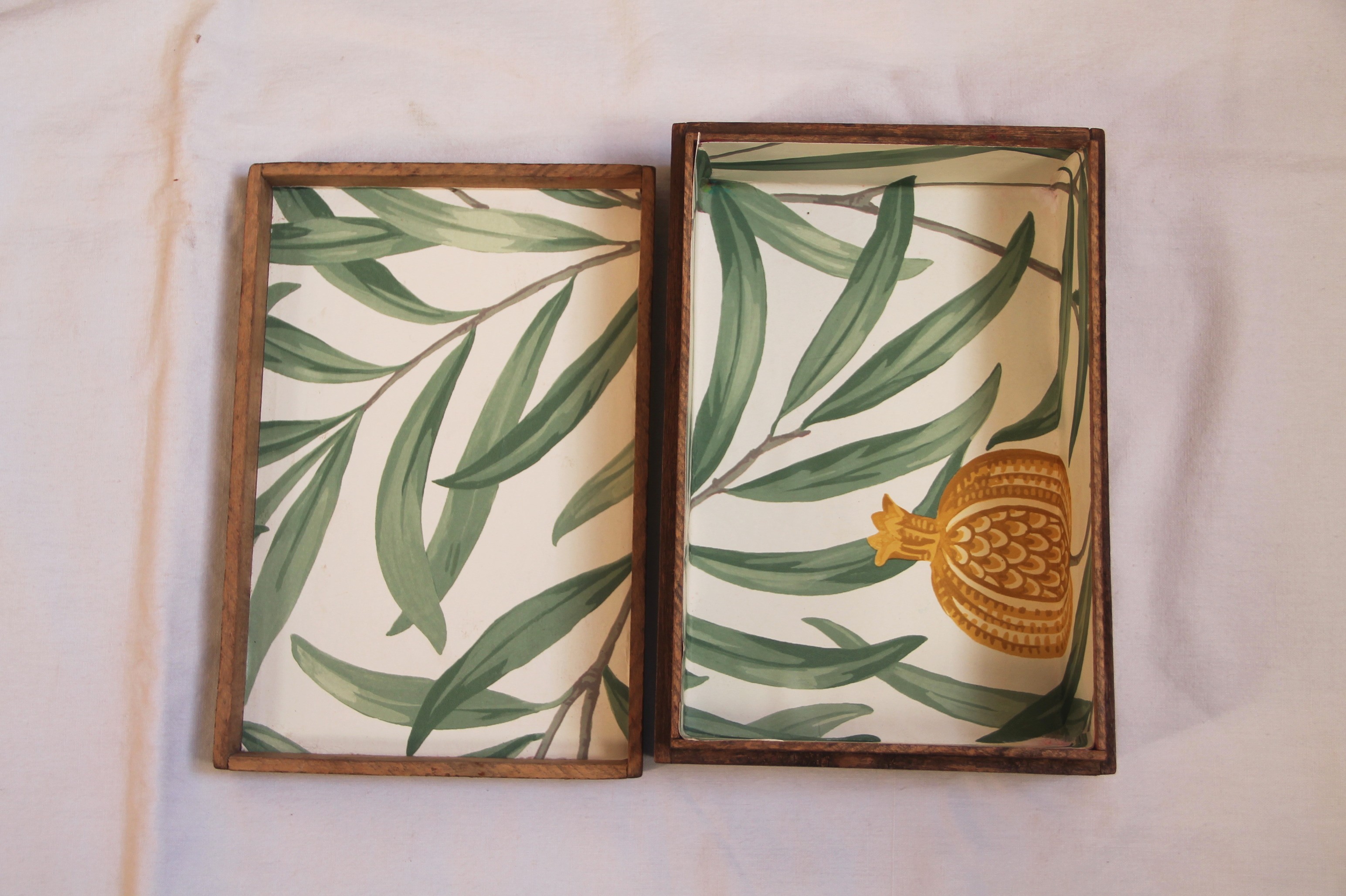 Le bois à été teinté de 2 tons différents afin de faire ressortir les motifs.