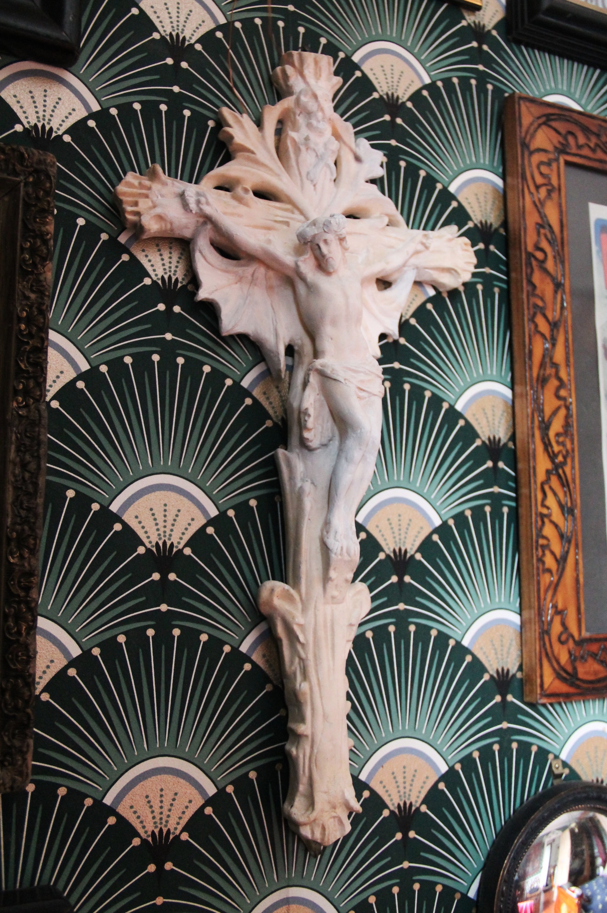 Véritable statue de Jésus crucifié ayant été modifiée.