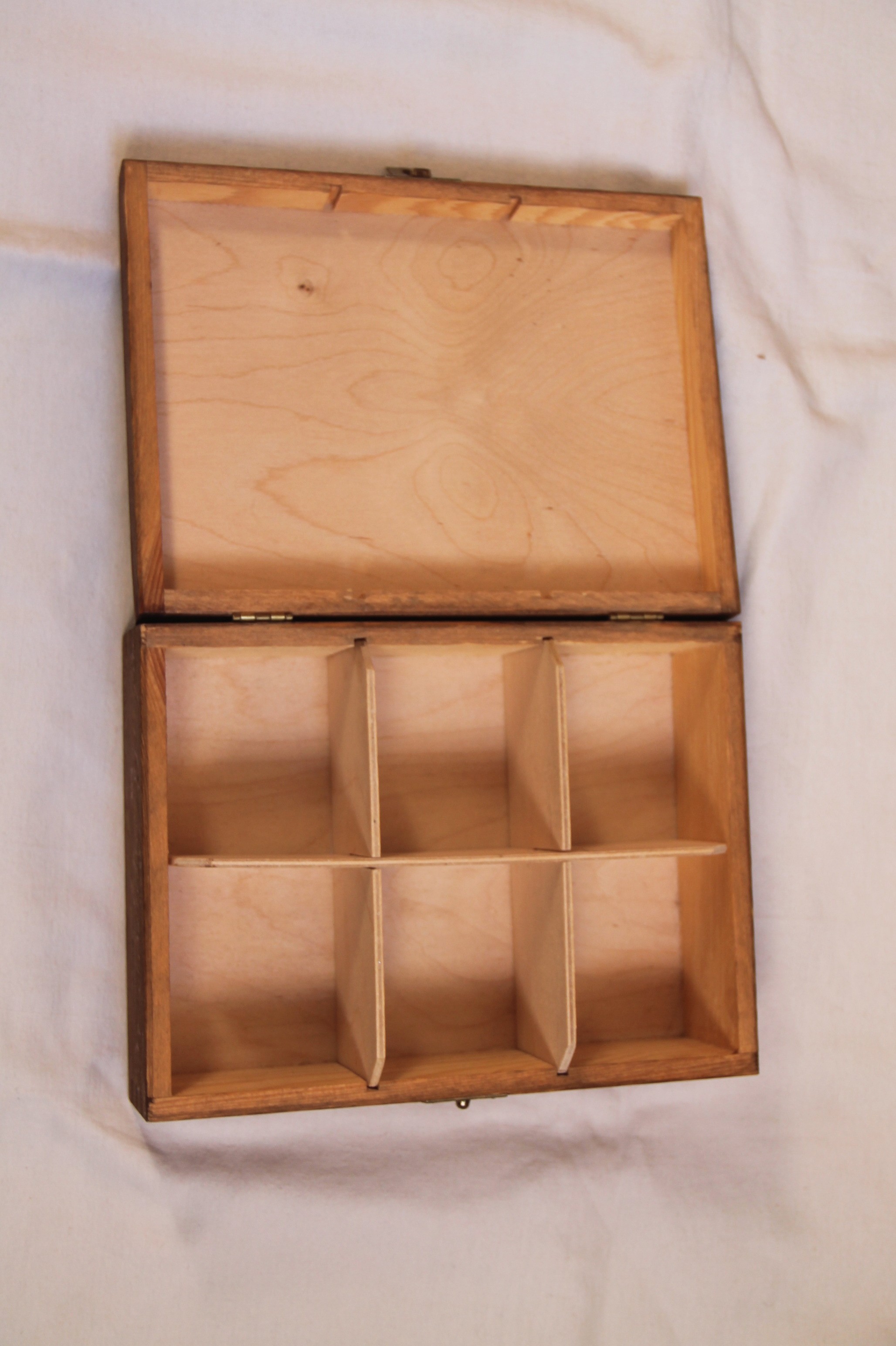 Le bois est teinté de 3 couleurs différentes, pour faire ressortir les motifs. Les anneaux et les inscriptions sont en doré.