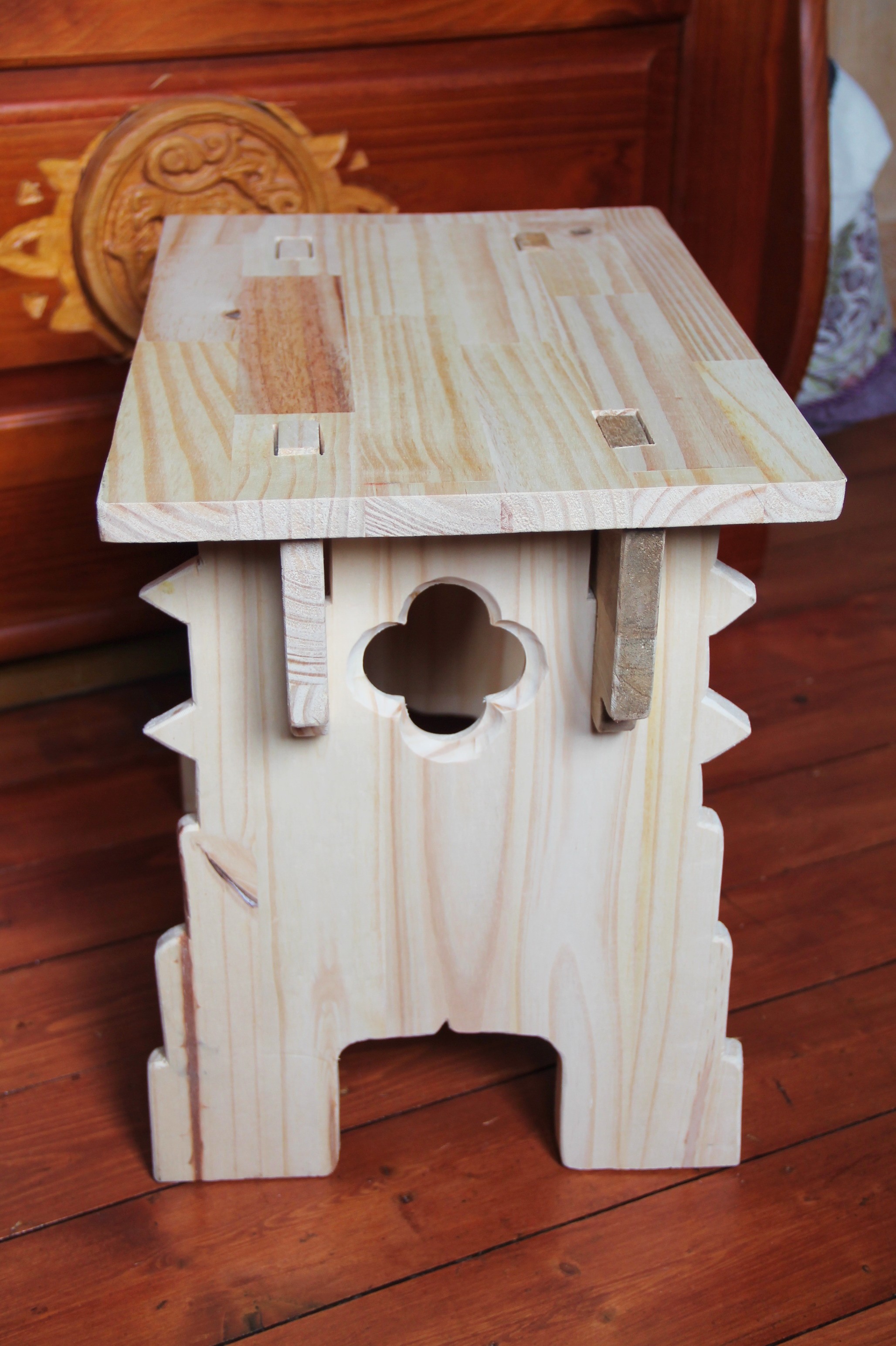 Chaise en bois de style médiéval.