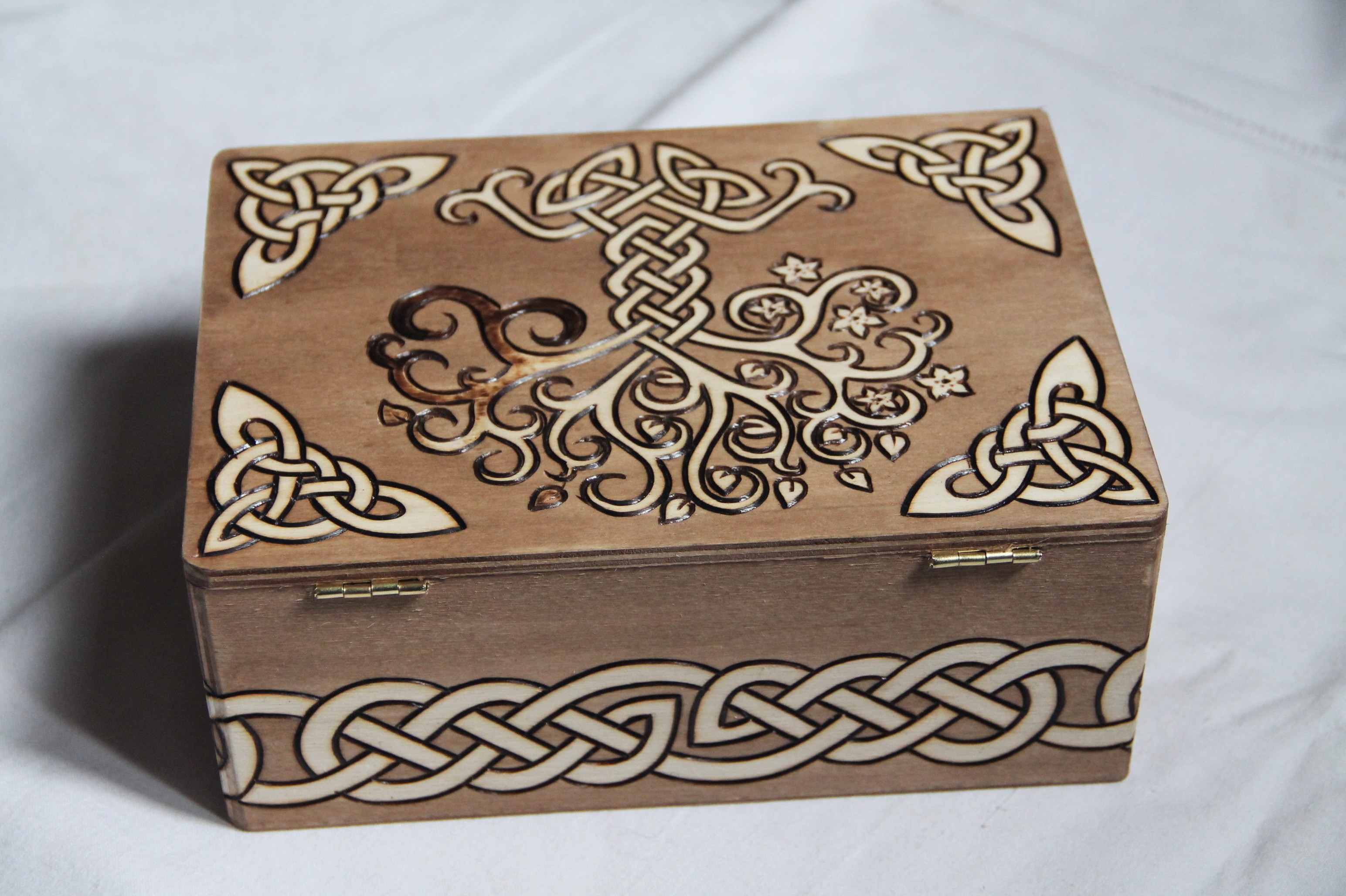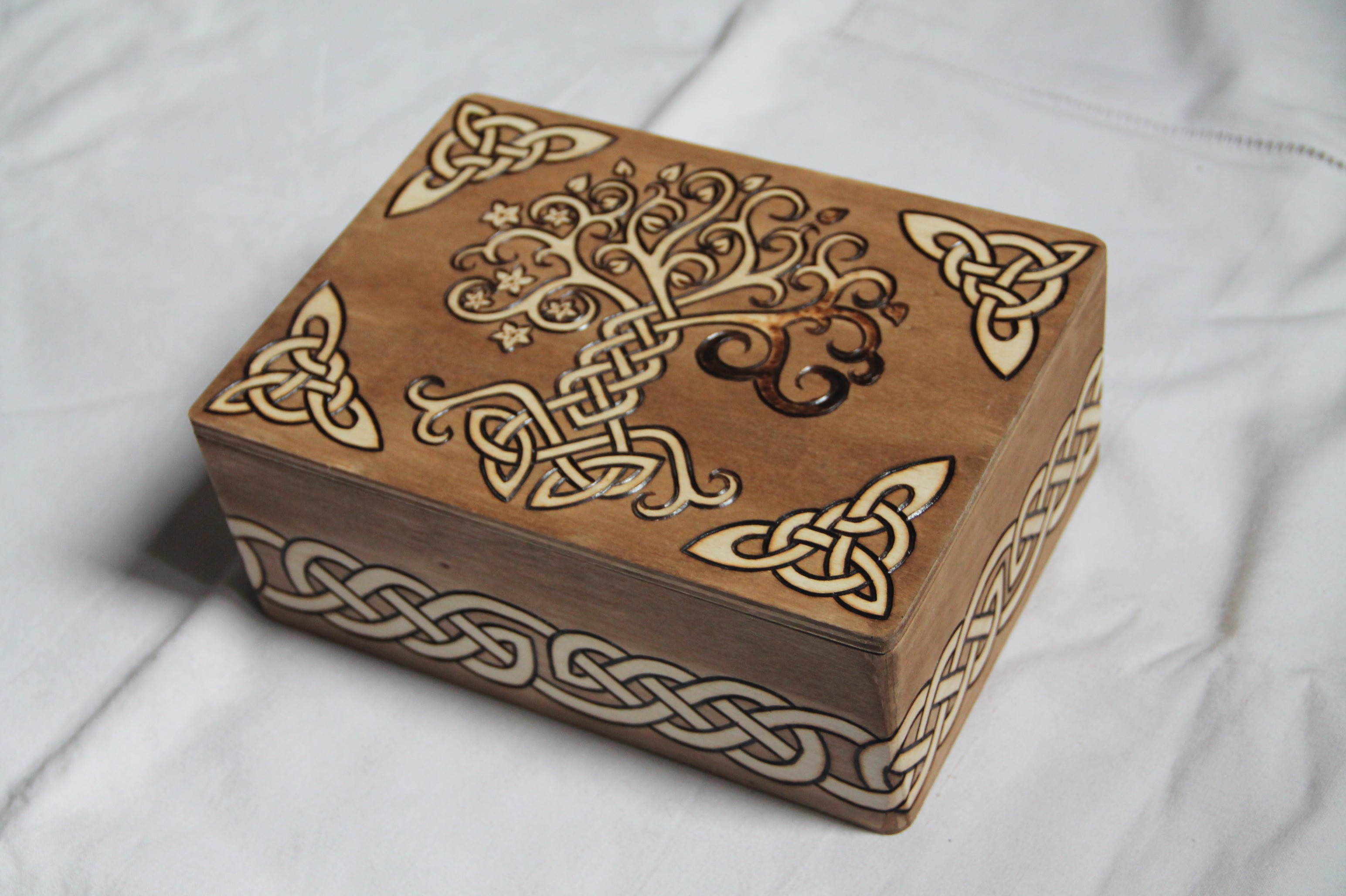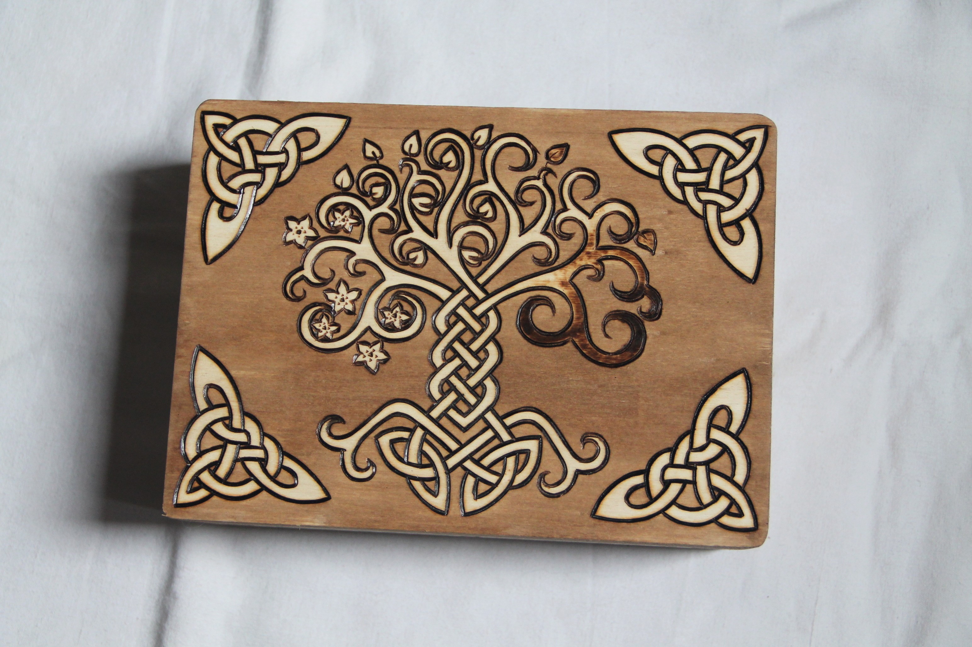 Sur le couvercle est gravé Yggdrasil, que des noeuds celtes à chaque coin.