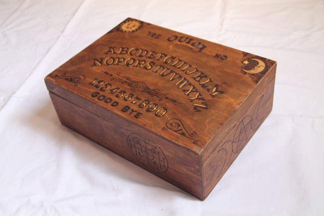 Coffret vintage, en bois gravé, décor ouija, spiritisme, magie, occulte, esprits, fantôme, gothique