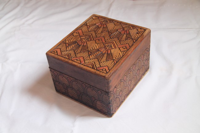 Boite vintage en bois gravé motifs art déco