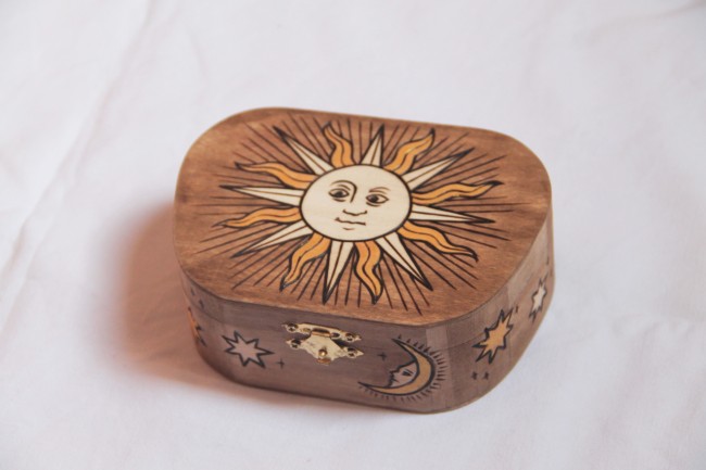 Boite en bois étoiles et constellations