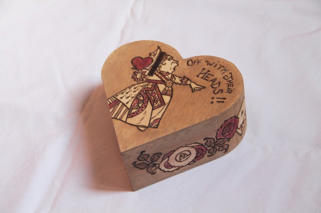 Boite en bois en forme de coeur, Reine de coeur